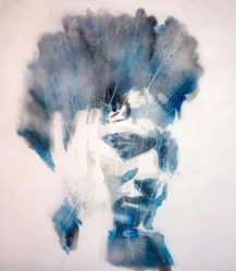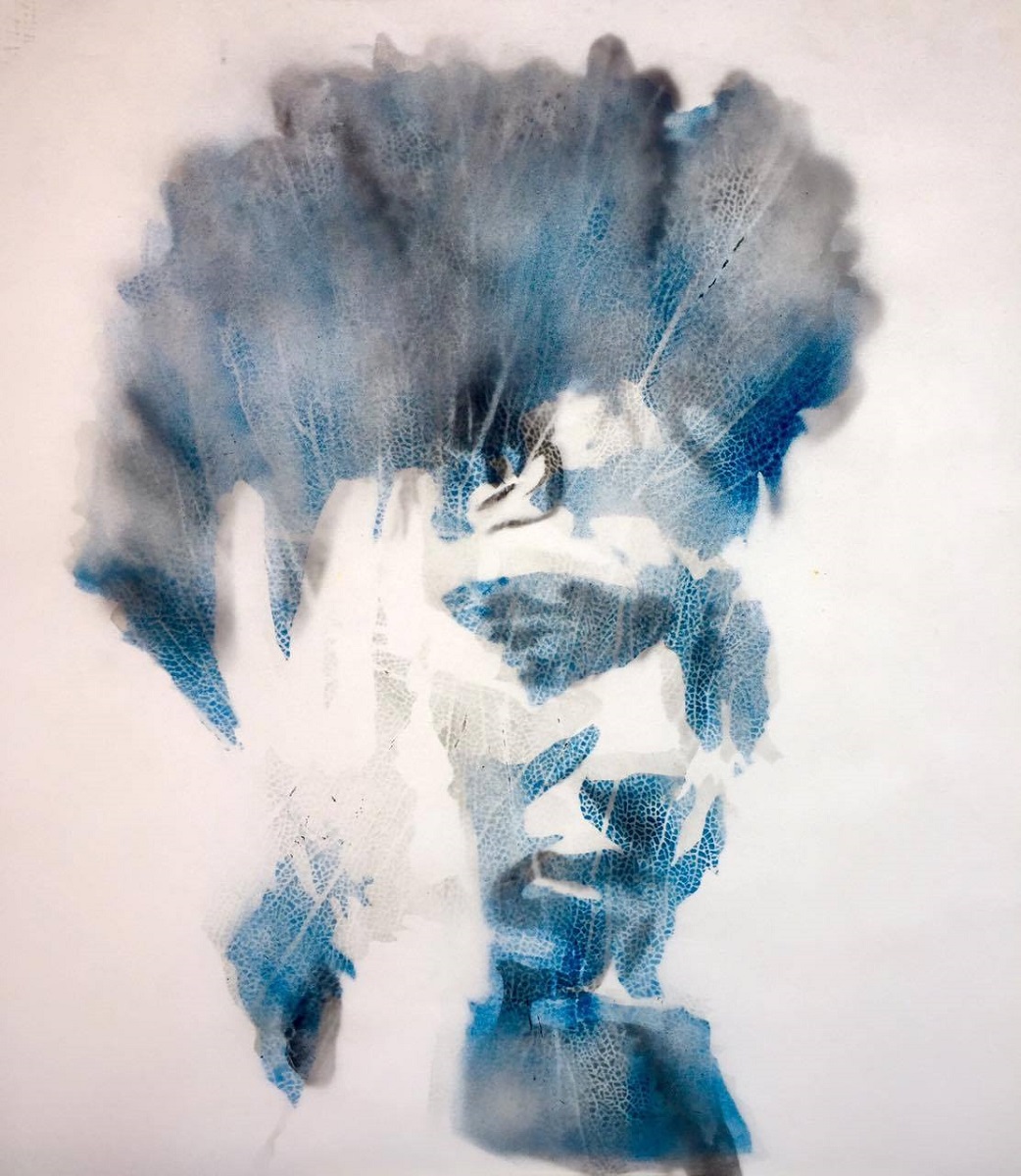 Asher Mains jokes about having a “beach-based art practice”. He scours Grenada’s beaches, searching for the regularly offered detritus, the gifts from the sea. Concerned for the death of the life sustaining coral reefs in the Caribbean sea, he considers the sea fan the “lungs”, the breath of life. The large, multi-layered humans he then paints become the anthropomorphized figures that need these lungs to breathe, as do we all.